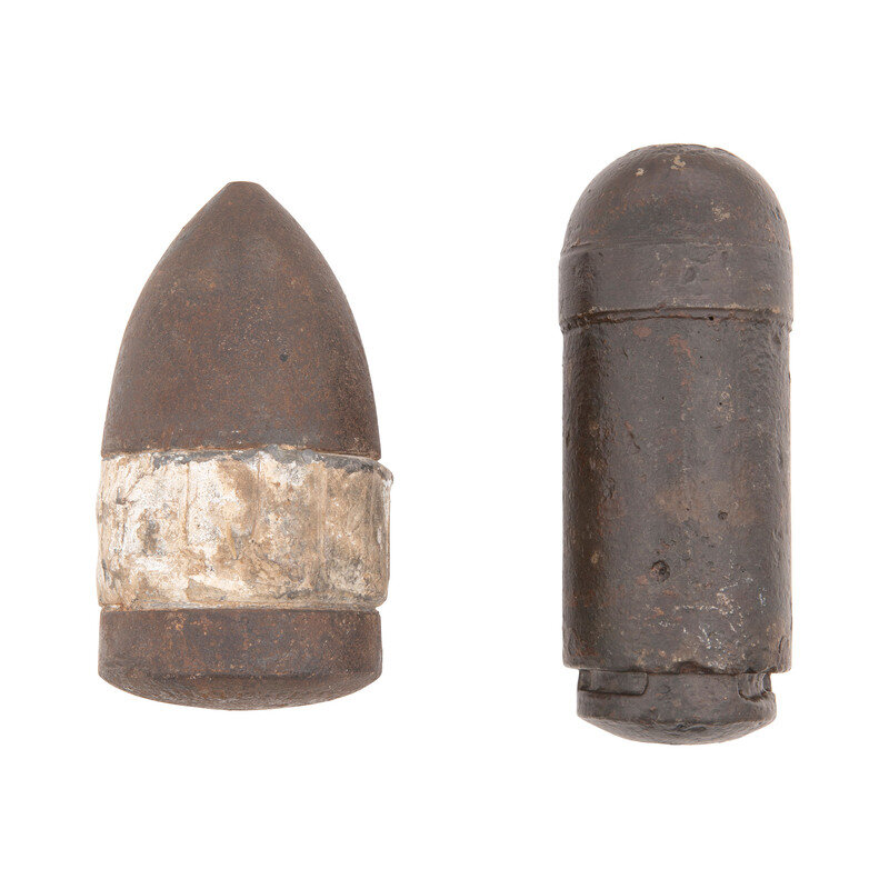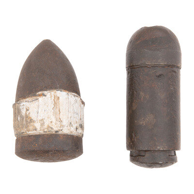 Two Excavated Civil War Artillery Shells: 3.8" Hotchkiss Bolt for the 14 Pound James Gun and 3" Confederate Broun Shell