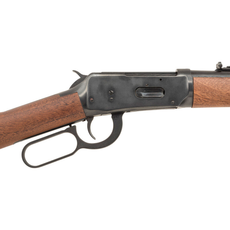 .30-30. 20" barrel length. SN: 5240664. Blued metal finish with walnut straight wrist stock mounting shotgun style butt and half length handguard. Lever action repeating rifle fed by a full length tube magazine and mounting semi-buckhorn rear and fully hooded front bead sights. Standard make and model markings, and right hand ejection. Receiver is drilled and tapped from factory for optics mounting. {MODERN}