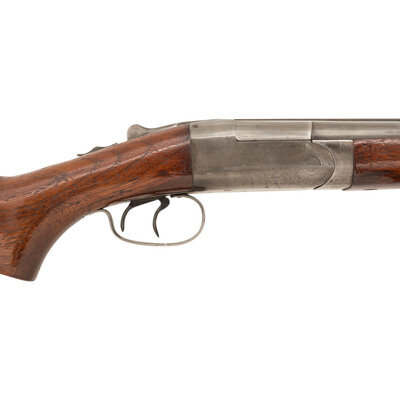 12 Gauge. 30" barrel length. SN: 77130. 2.75" chamber length. Modified Left. Improved Cylinder Right. Blued metal finish with walnut semi-pistol grip stock and beavertail forend featuring a WINCHESTER marked synthetic butt, and a varnished finish. Double barrel side by side boxlock extractor shotgun. Standard make and model marks, with rounded edges to metal parts suggesting refinish. The forend retaining lug has been rewelded and blued over. {C&R}