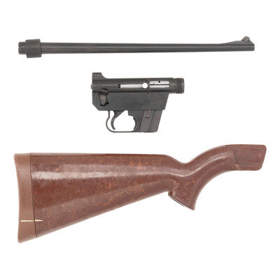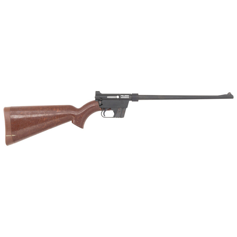 .22lr. 16" barrel length. SN: 50338. Black factory finish with hollow cycolac stock. Simple blowback operated auto-loading rifle charged by detachable single stack magazines capable of being stored in the stock. Rifle mounts rear aperture and front bladed sight. Barrel and receiver are detachable and able to be stowed inside of stock. {C&R}