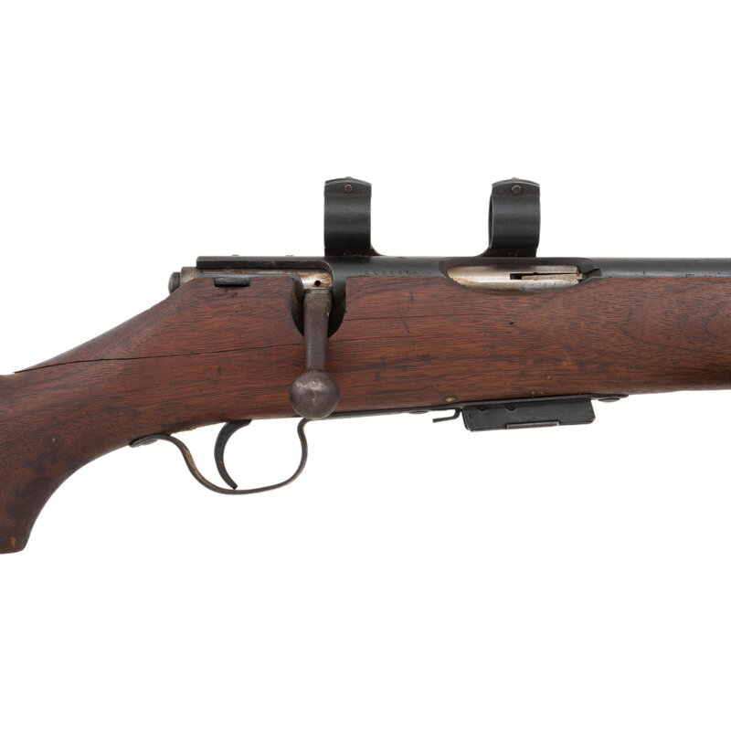 .22 Hornet. 24.75" barrel length. SN: 209561. Blued metal finish with polished bolt mounting walnut semi-pistol grip stock with S1 scope base and rings, and a front bead sight, but lacks scope and rear sight. Bolt action repeating rifle fed by detachable single stack magazines. Standard make and model marks. {C&R}
