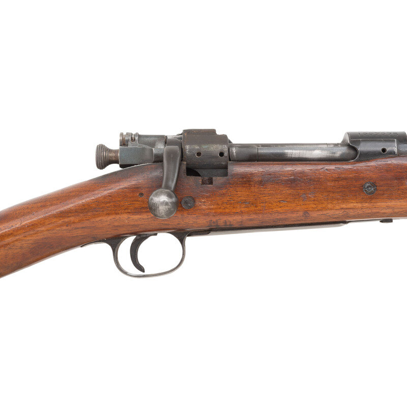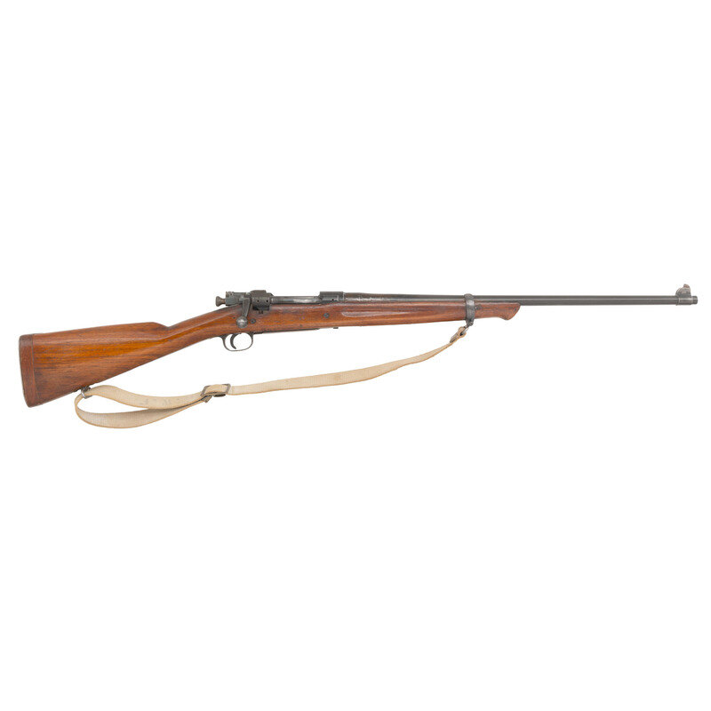 .30-06. 24" barrel length. SN: 1222275. Parkerized metal finish set in cut down walnut stock. Bolt action repeating rifle charged by internal magazine mounting bladed front sight and sling mounts with metal buttplate. Rear sight has been removed and right side appears to have been tapped for a scope mount. Item includes canvas sling. {C&R}