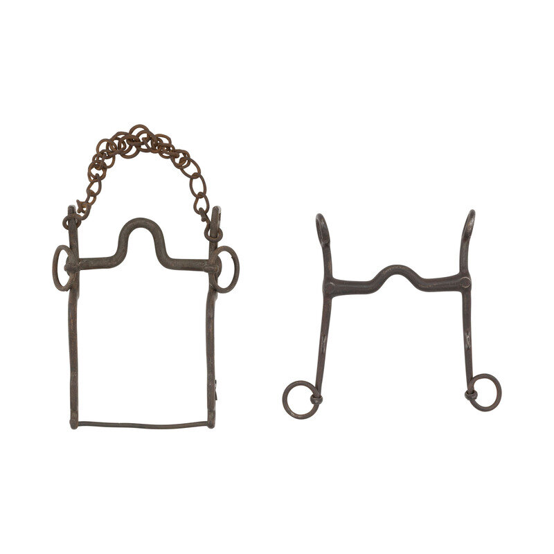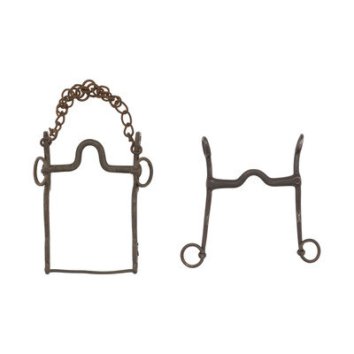 1) Iron curb style artillery type bit with chain, nominally 8" by 5.25". Unmarked.