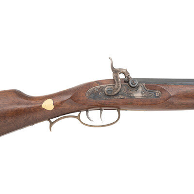 .50 caliber. 40.375" pinned octagonal barrel. SN: 14-13-033720-01. Blued finish, color casehardened lock and hammer, brass furniture, full-length hardwood stock with raised cheek rest. Single shot muzzleloading percussion rifle with brass patchbox, sheet brass decorations, elevation adjustable semi-buckhorn rear sight and dovetailed Rocky Mountain front sight blade. Standard importer markings, black powder only warnings and caliber mark. {ANTIQUE}