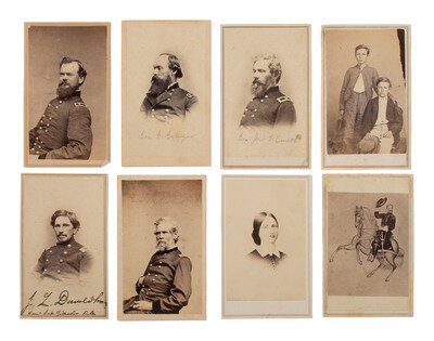 [CIVIL WAR] Civil War CDV collection likely assembled by a soldier, incl. generals, signed portraits, and a view of "The Castle" in Vicksburg, MS.
