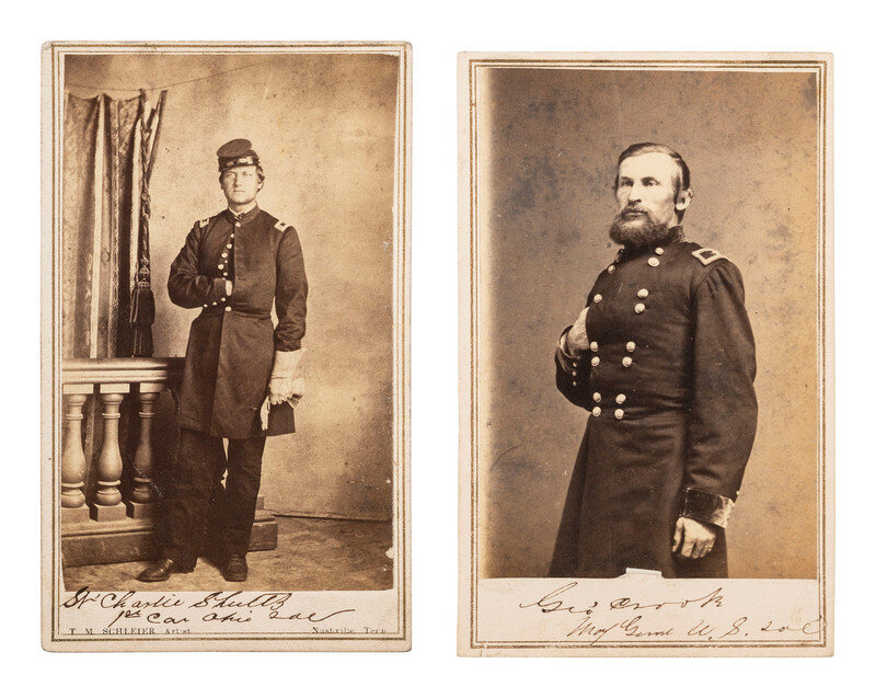 [CIVIL WAR]. CDVs of General George Crook and Captain Charles Shultz, 1st Ohio Cavalry.