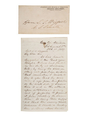 DAVIS, Jefferson (1808-1889). Autograph letter signed ("Jeffn. Davis") as Confederate States President, to Gen. Louis T. Wigfall. "Executive Mansion," Richmond, VA, 11 October 1862.