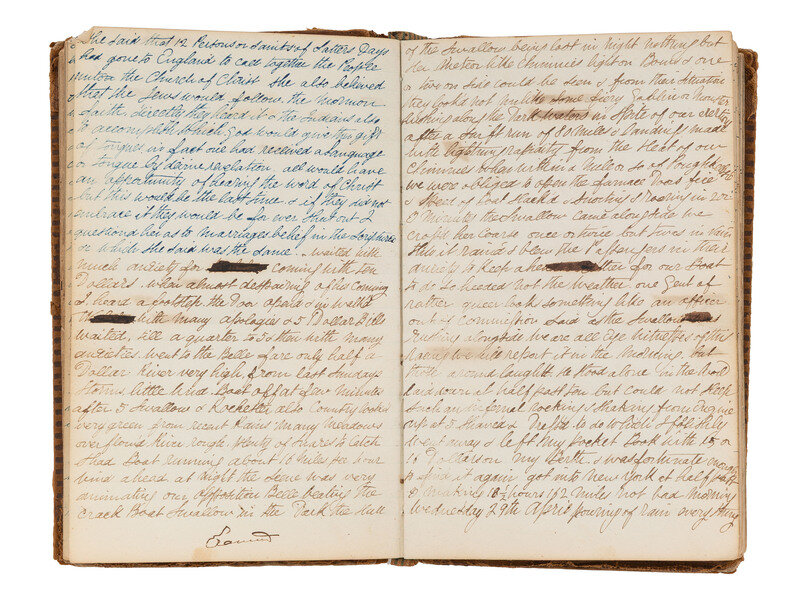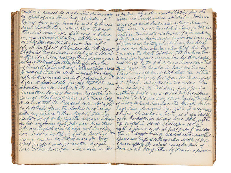 Rare and extensive manuscript diary of an unidentified itinerant portrait artist, and daguerreotypist. Active in the New York City region during the spring of 1840, the author would have been among the earliest to use the daguerreotype method in America, first introduced by Louis-Jacques-Mande Daguerre in 1839.