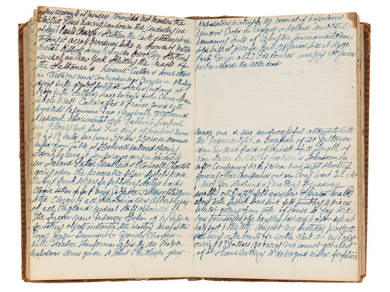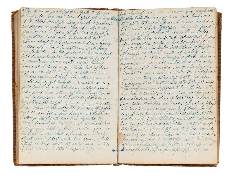 Though we cannot confirm the identity of the author of the diary featured here, it is possible that the identity could be ascertained with further research into many of the details included in the descriptive entries featured therein. The diarist comments on innumerable subjects into which he comes into contact either in-person or via newspapers and word-of-mouth reportage including political parties, African Americans, religion (including Mormonism), scientific experiment, literature, national politics, British current events, and many, many more. This diary is truly a trove of mid-19th-century thought and expression, providing insight into the many exciting goings-on in New York and the recent invention of photography.