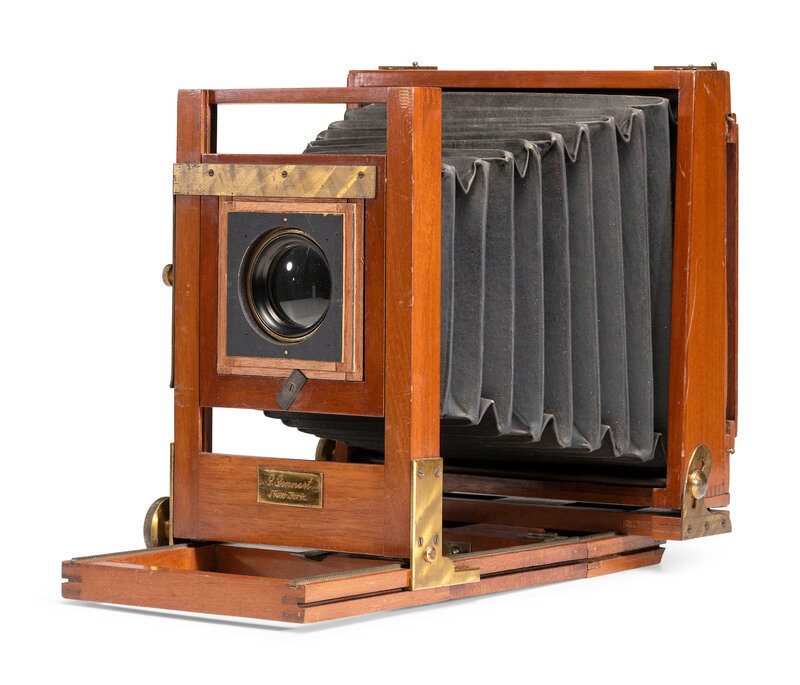 [EARLY PHOTOGRAPHY]. Front focusing field camera. G. Gennert, New York, ca 1889.
