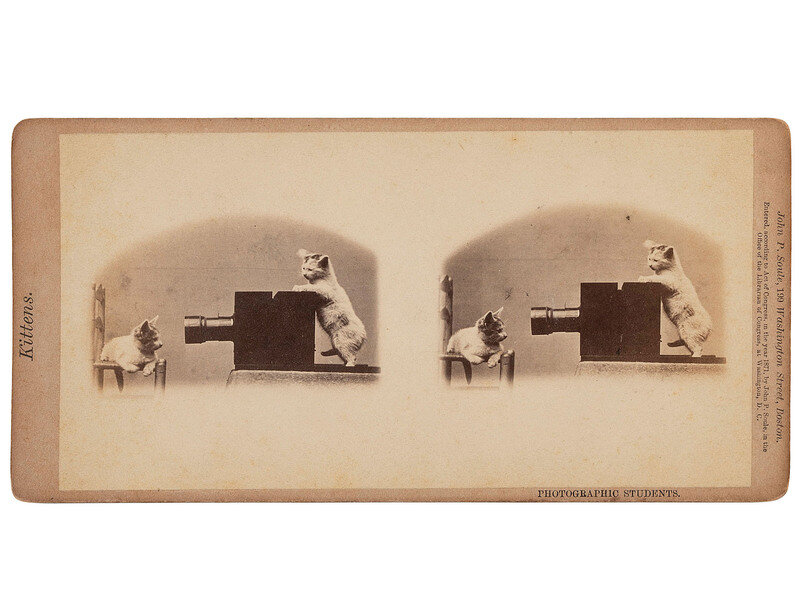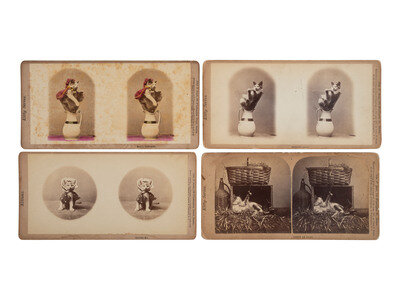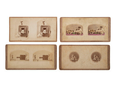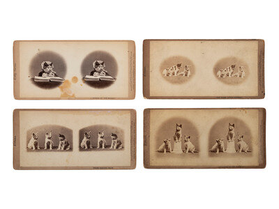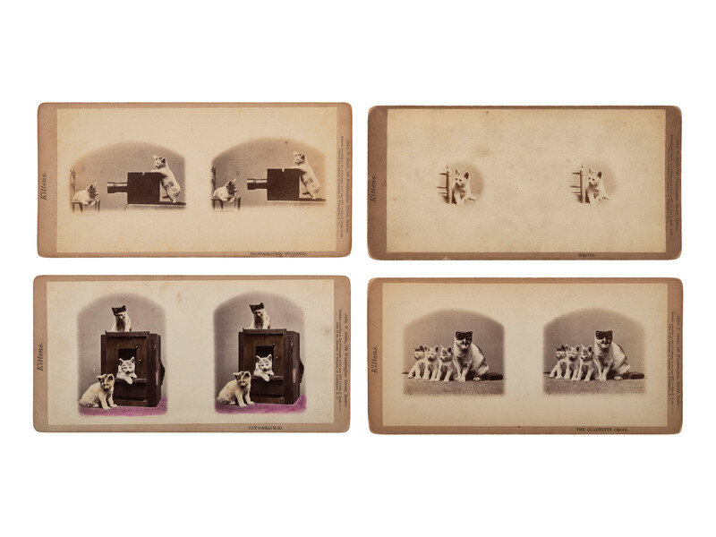 [EARLY PHOTOGRAPHY]. SOULE, John P. (1828-1904), photographer. 16 stereoviews of cats from the "Kittens" and "Kitty" series. Boston, MA: 1871.