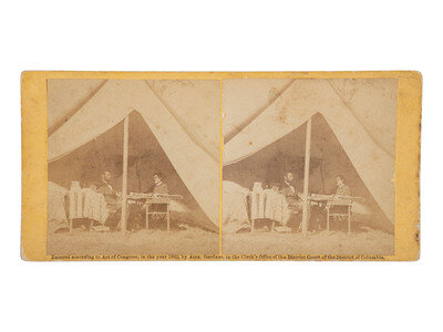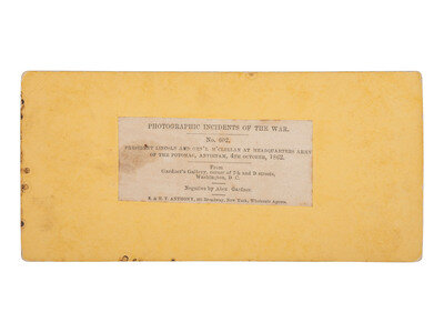 Stereoview on yellow mount, with Gardner's copyright to lower edge and applied paper label to verso including image number, title, negative credit, and publisher's credit. In part: "Photographic Incidents of the War. / No. 602. / From Gardner's Gallery, corner of 7th and D streets, Washington, D. C."
