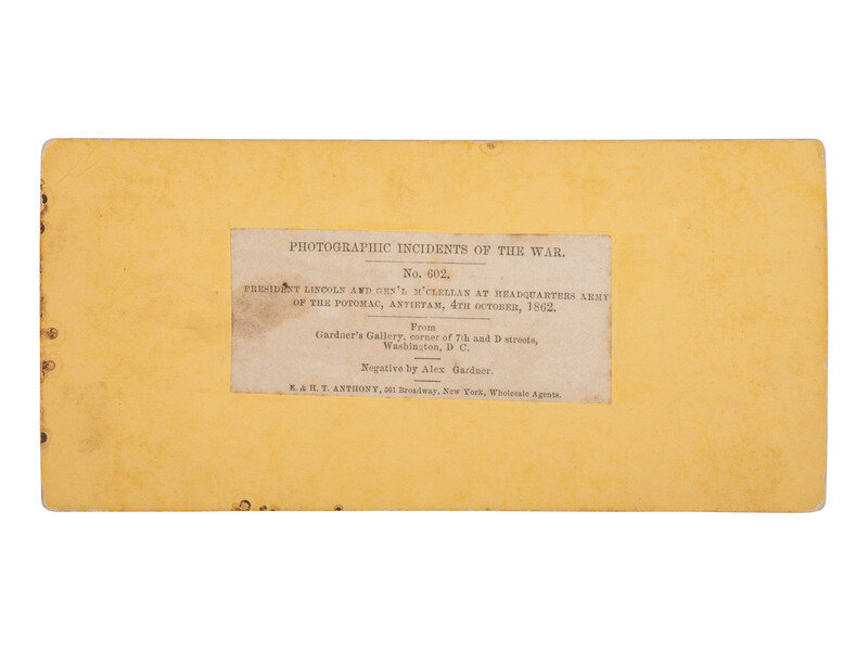 [LINCOLN, Abraham (1809-1865)]. GARDNER, Alexander, photographer. President Lincoln and Genl'l M'Clellan at Headquarters Army of the Potomac, Antietam, 4th October, 1862. New York: E. & H. T. Anthony.