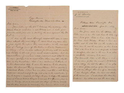 "Riggs House, Washington D.C.," 26 March 1900. 2 1/2 pages, 8 1/2 x 10 7/8 in., creased with some separations and minor losses.