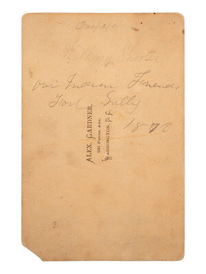 Cabinet photograph on cardstock mount of "Walking Shooter," as identified in lower margin. With verso notation, "Oncpapa [sic], Walking Shooter, Our Indian Friends, Fort Sully, 1870."
