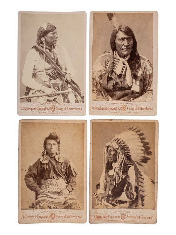 [NATIVE AMERICANS]. A group of 4 cabinet cards of Native American subjects from the Hayden Geological Survey. Ca 1870s.