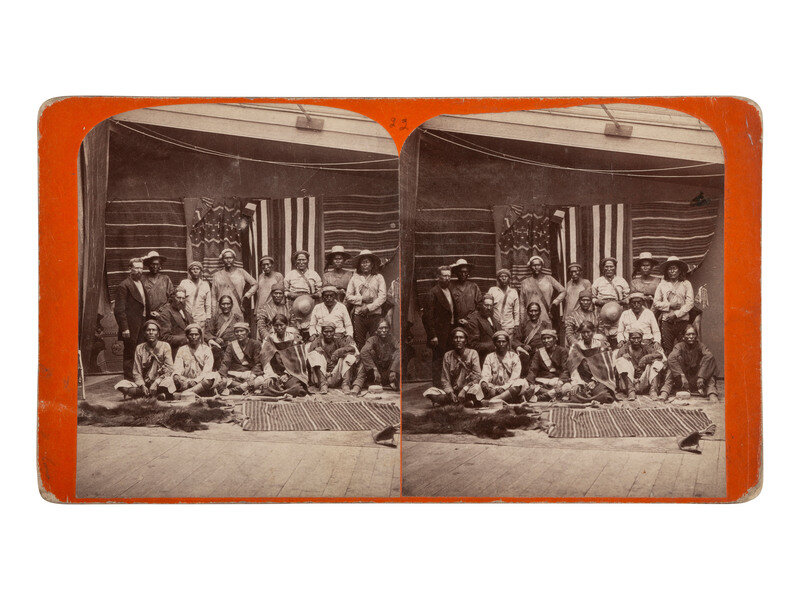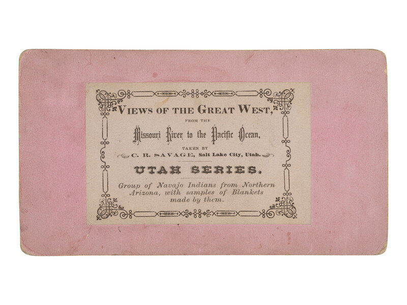 [NATIVE AMERICANS]. Group of Navajo Indians from Northern Arizona, with samples of Blankets made by them. Salt Lake City, UT: C.R. Savage, ca 1875.