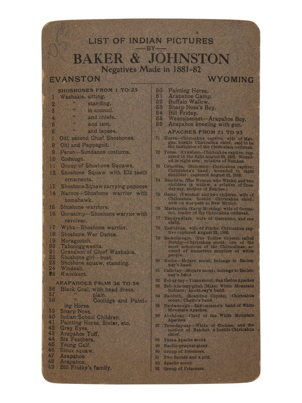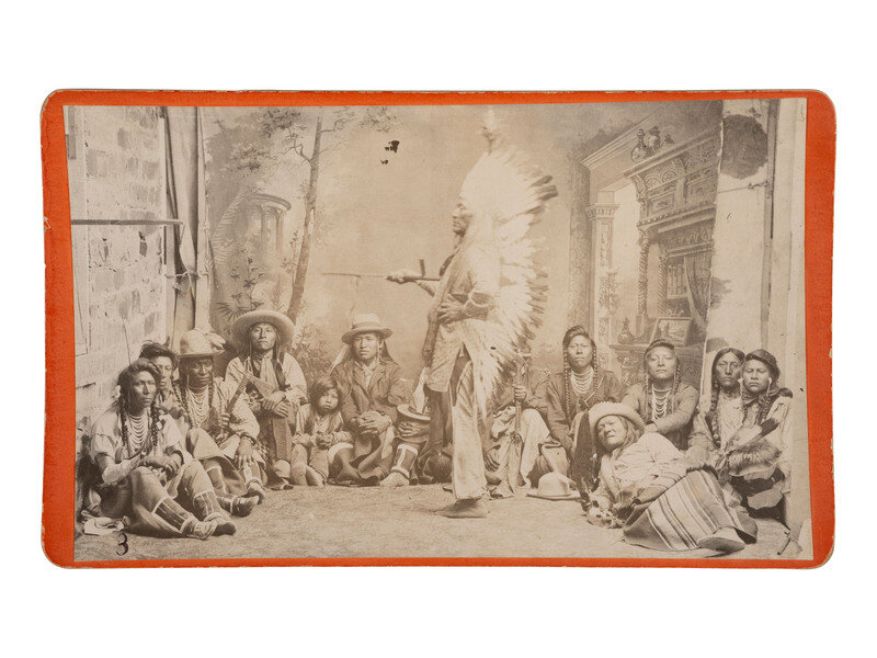 [NATIVE AMERICANS]. Cabinet photograph of Washakie and chiefs in council. Evanston, WY: Baker & Johnston, 1881-1882.