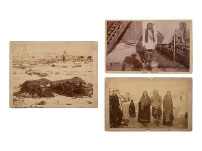 [INDIAN WARS]. Three photographs taken at Pine Ridge Agency, SD, featuring Wounded Knee view and identified Sioux chiefs incl. Kicking Bear.