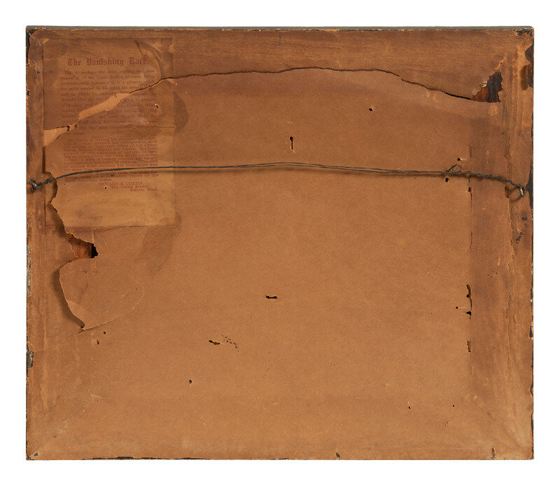 7 3/4 x 9 1/2 in. orotone. Housed in original arts and crafts gesso and wood batwing frame with Curtis' applied paper label on verso, 11 1/2 x 13 1/2 in. Signed by Curtis lower right in negative.