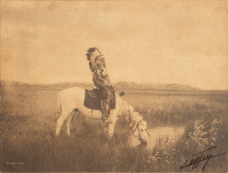5 3/4 x 7 3/4 in. platinum photograph, mounted, matted, and framed, 17 1/4 x 18 1/2 in. Signed by Curtis lower right. Blindstamp at lower left.