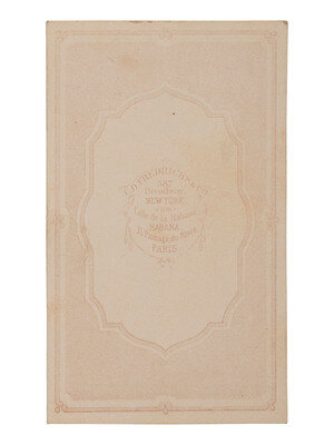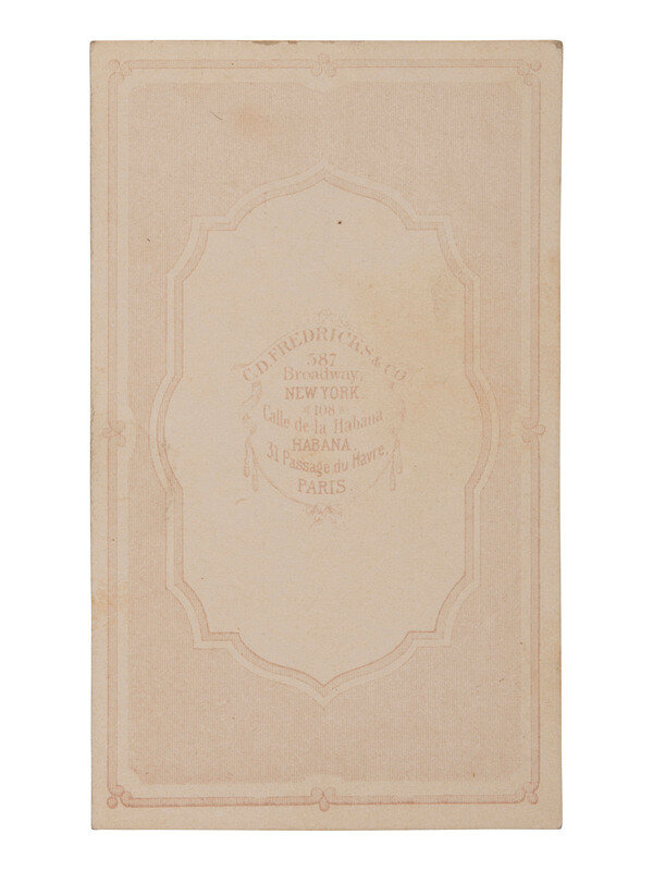 CDV seated portrait of Houston with Fredricks & Co.'s 587 Broadway imprint on verso and ink identification on recto beneath image.