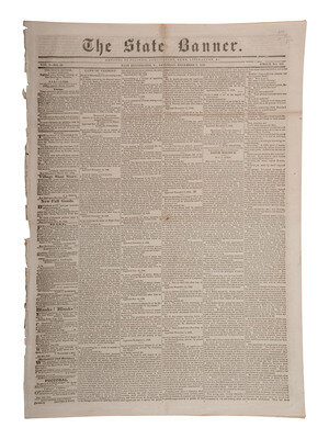 Accompanied by 2 December 1848 issue of The State Banner with which the broadsheet was issued. 4pp., folio, 22 3/4 x 16 in.