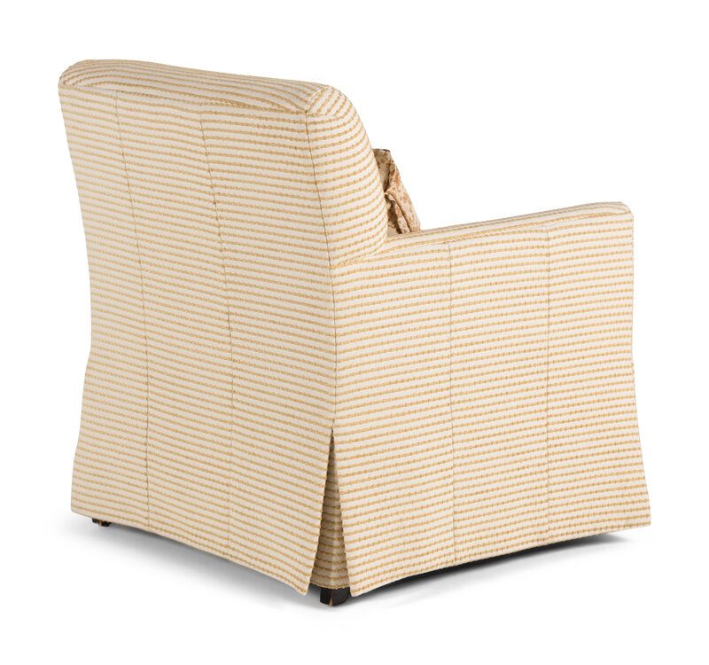 labeled for Sherrill Furniture under seat cushion, together with two Fortuny upholstered pillows.