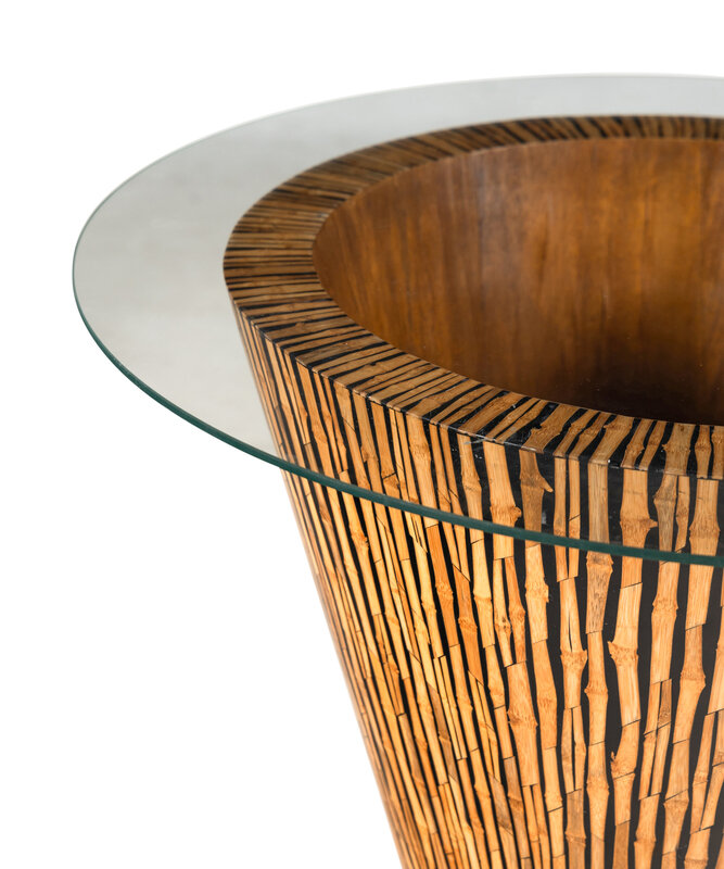 A R+Y Augousti Lacquered Bamboo and Glass Table