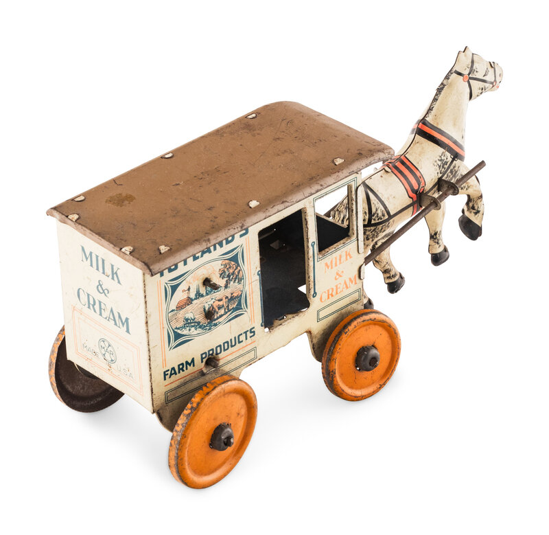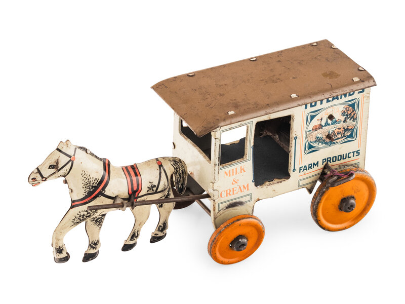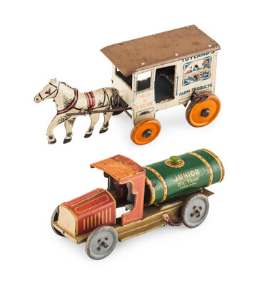 comprising a A Marx Toylands Milk & Cream toy and a Strauss Junior oil truck.