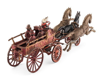 A Hubley Fire Patrol Painted Cast Iron Wagon