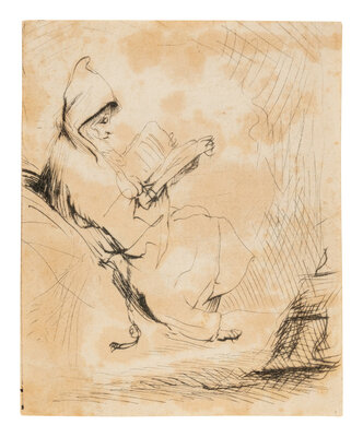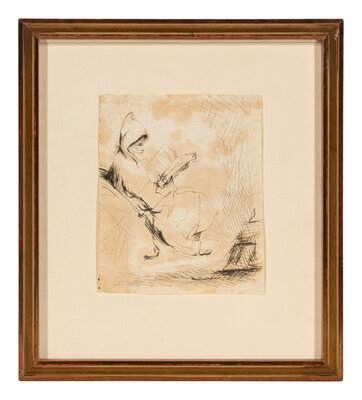 Seated, Hooded Man Reading