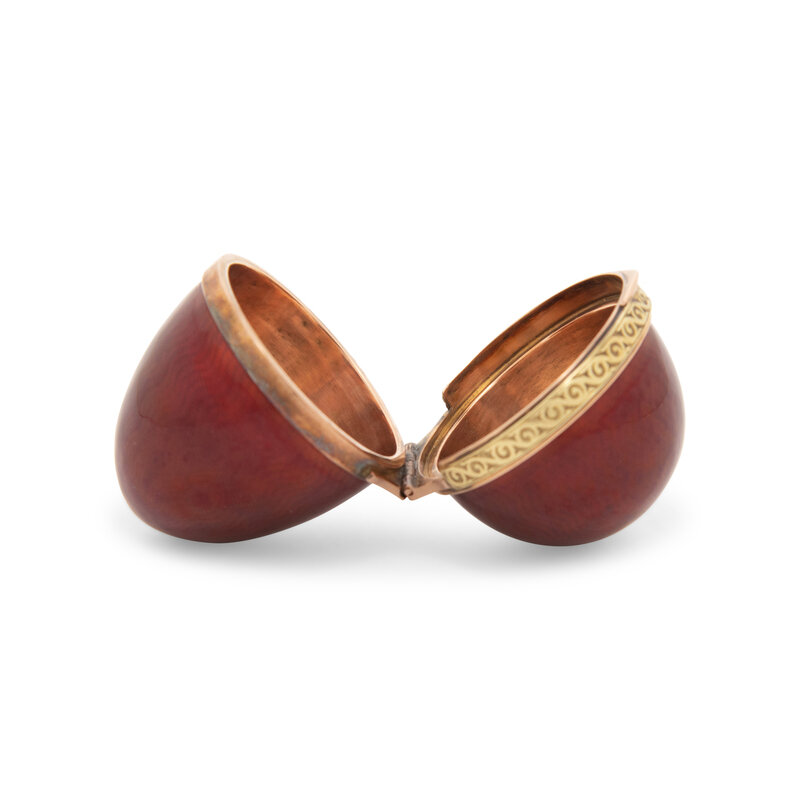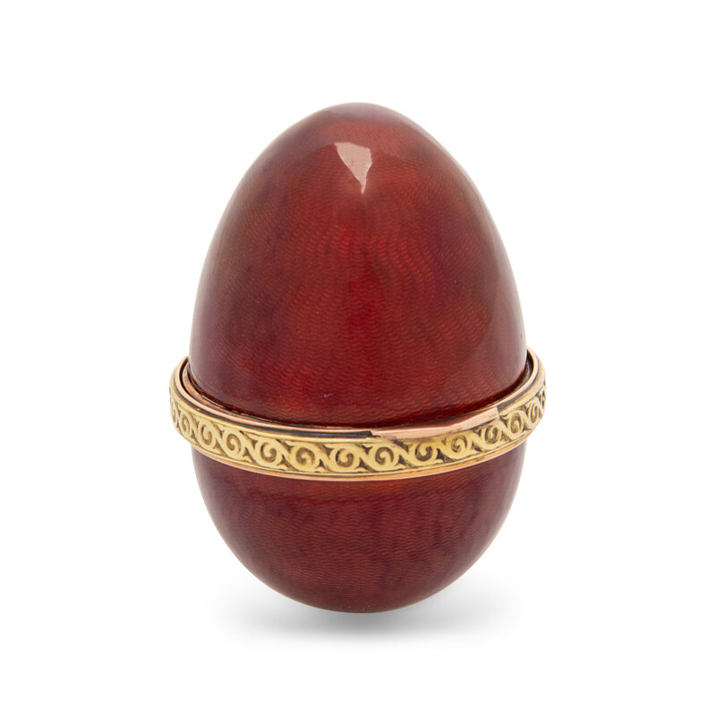 A Gold and Guilloché Enamel Egg-Form Snuff Box