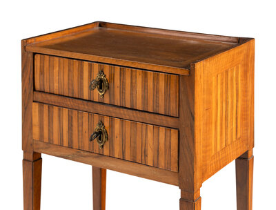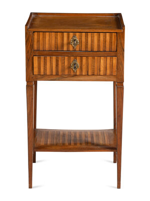 A Louis XVI Style Walnut and Fruitwood Side Table