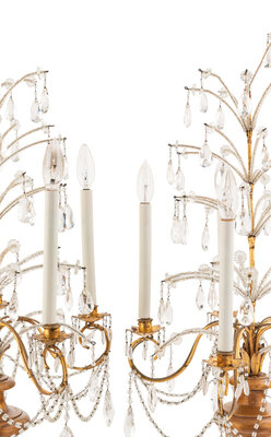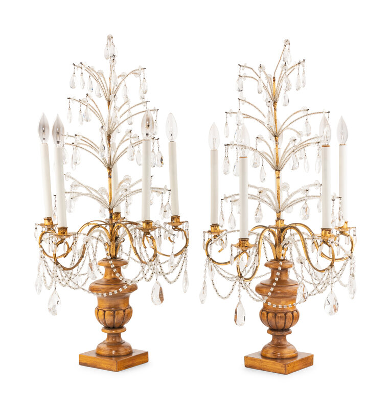 A Pair of Large Italian Giltwood Five-Light Girandoles