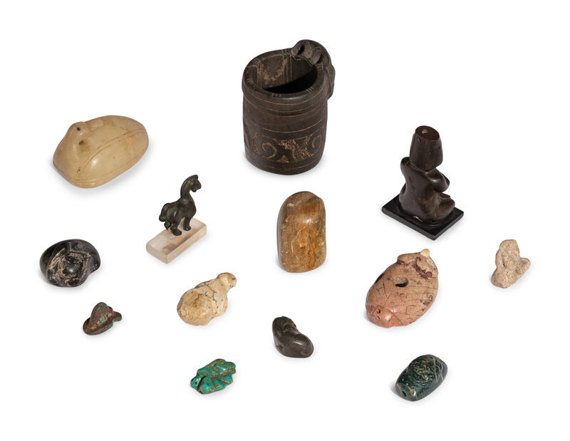 A Group of Twelve Pre-Colombian Style and Near Eastern Style Carved Stone Articles