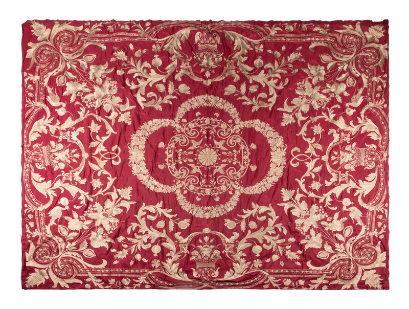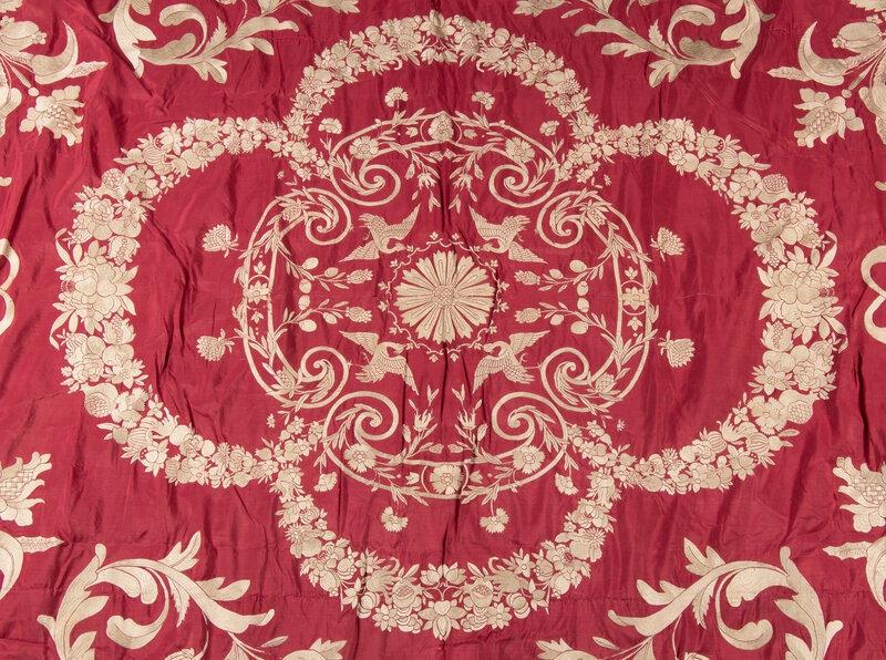 A Large Embroidered Silk Panel or Bed Cover