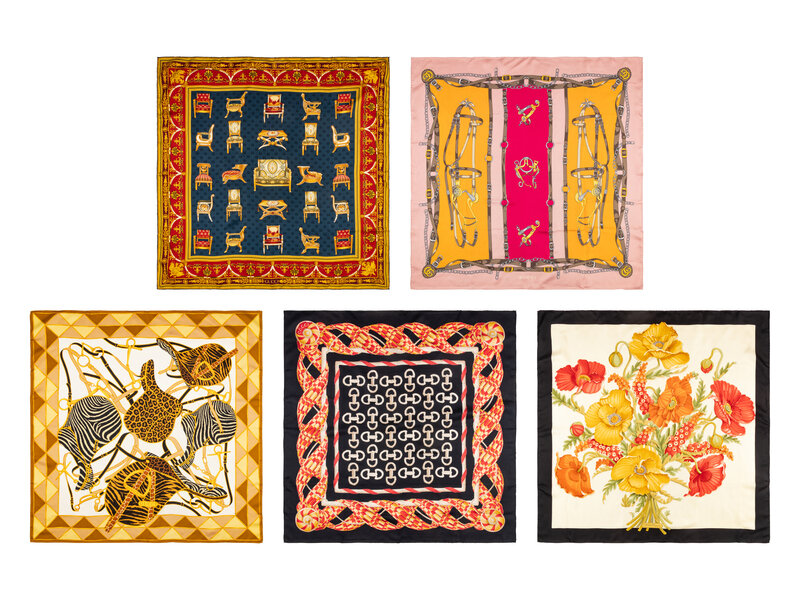 Gucci & Ferragamo, Five Silk Scarves