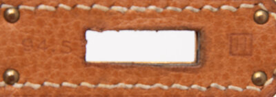 Additional Information: Gold-plated hardware; turn-lock toggle closure; gold goatskin lining; one main compartment with two slip pockets and one zippered pocket; protective feet at base.