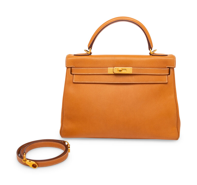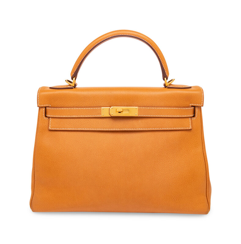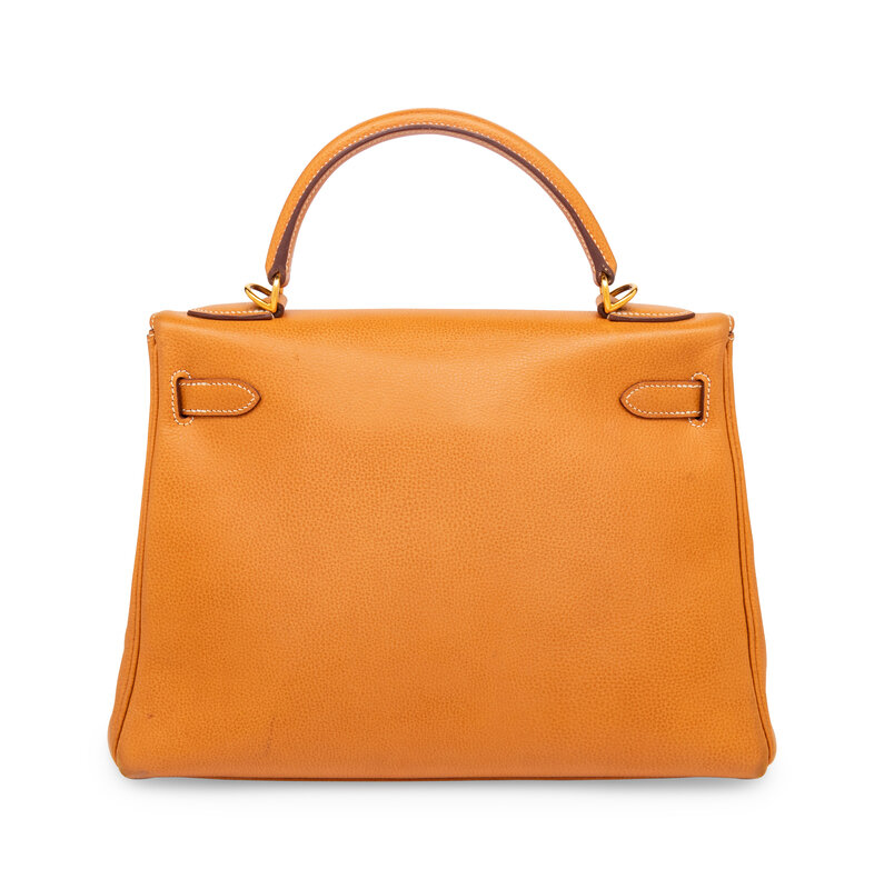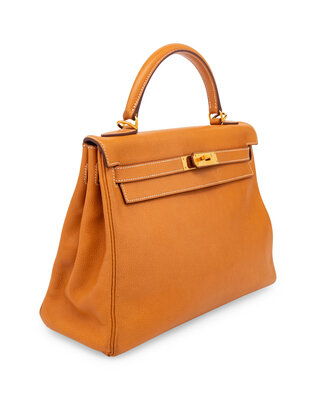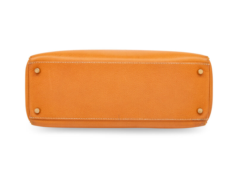 Hermès Kelly 28 Retourne in Gold Togo leather with gold-plated hardware.