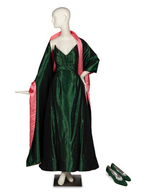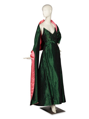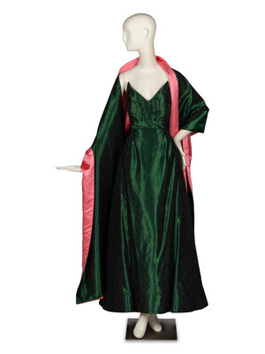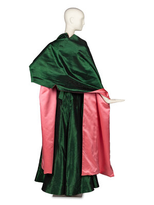With matching stole in green shot silk, lined in bubblegum pink duchesse silk.