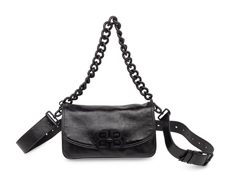 BB Soft Small Flap Bag in Black Calfskin Leather with Matte Black Hardware.