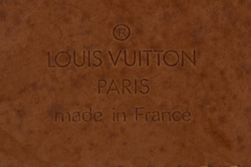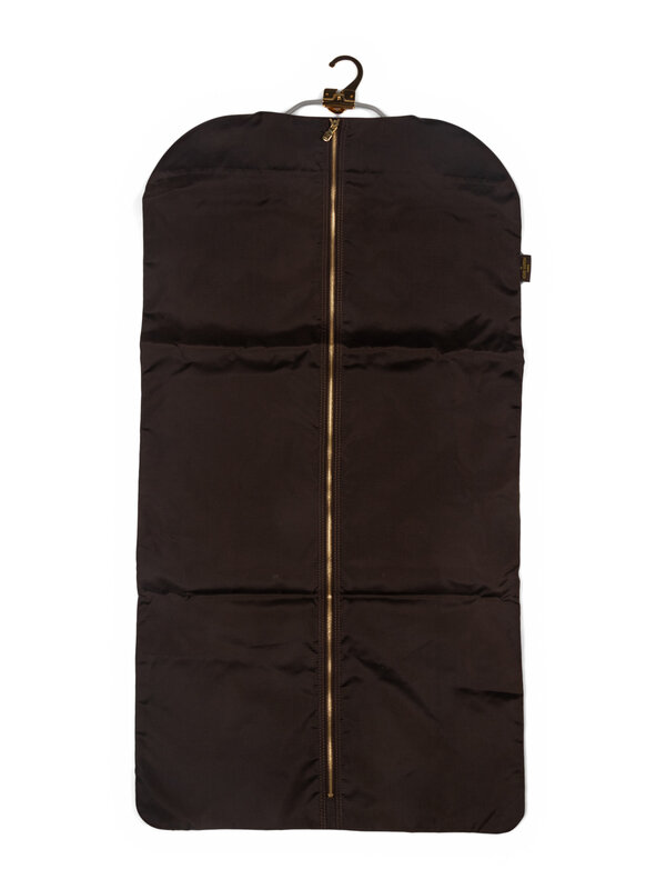 Additional Information: Brass hardware; two-way zipper closure; canvas lining; two exterior slip pockets; two wheels; two elasticated interior garment straps