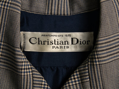 Boxy shirt-jacket in lightweight glen check plaid wool. Convertible pointed collar. Full length sleeves with buttoned shirt cuffs. Two patch pockets at hips, one patch pocket at upper chest. Button closures at front. Fully lined in navy blue silk habotai.