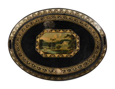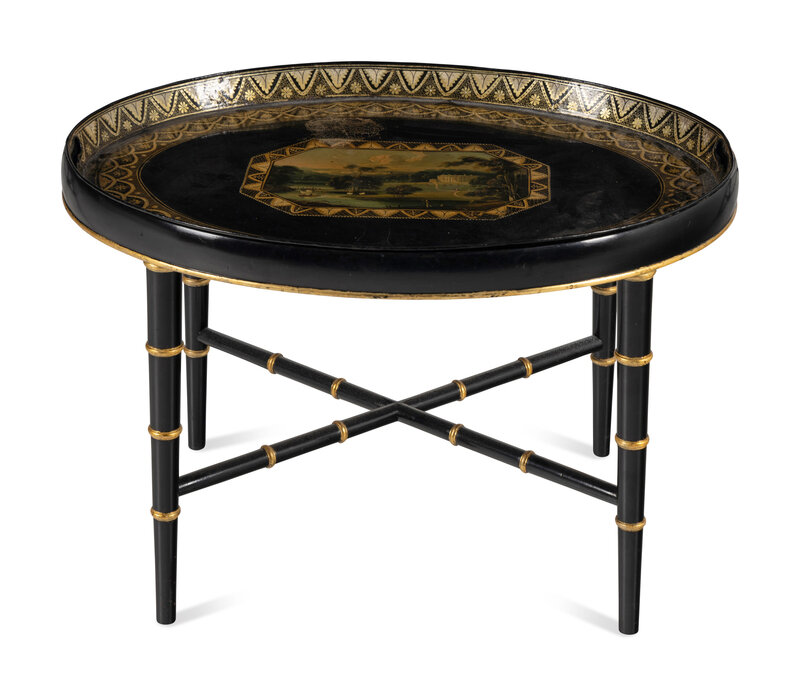 A Victorian Black Tole Piente Tray Table