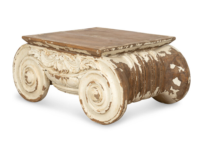 A Carved and Painted Pine Ionic Capital Low Table