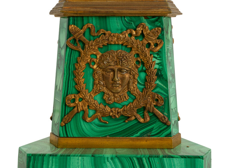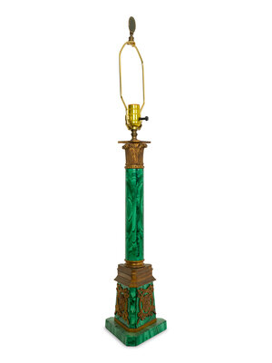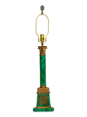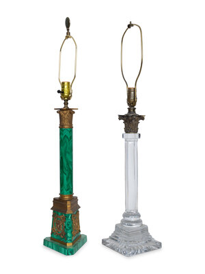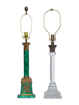 A Gilt Bronze Mounted Malachite Lamp and a French Cut Glass Columnar Lamp