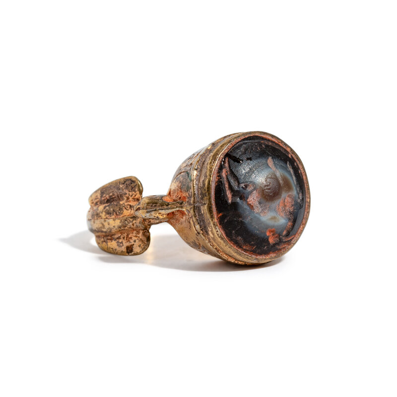A Roman Gold and Agate Finger Ring