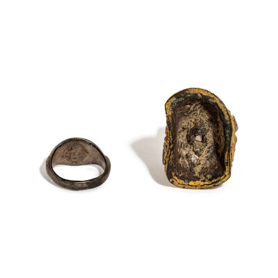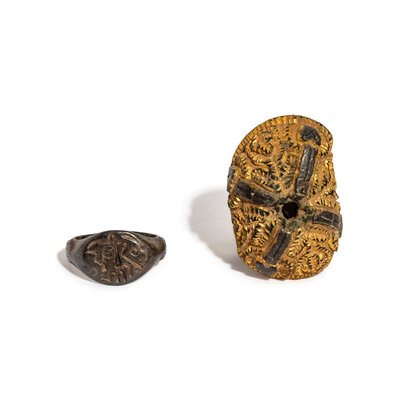 An Islamic Silver Ring and Byzantine Gilt-Silver Applique with Cross