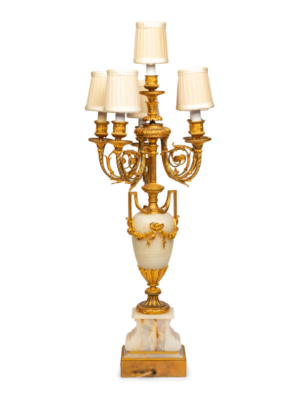 A Gilt Bronze Mounted Alabaster Six-Light Candelabrum